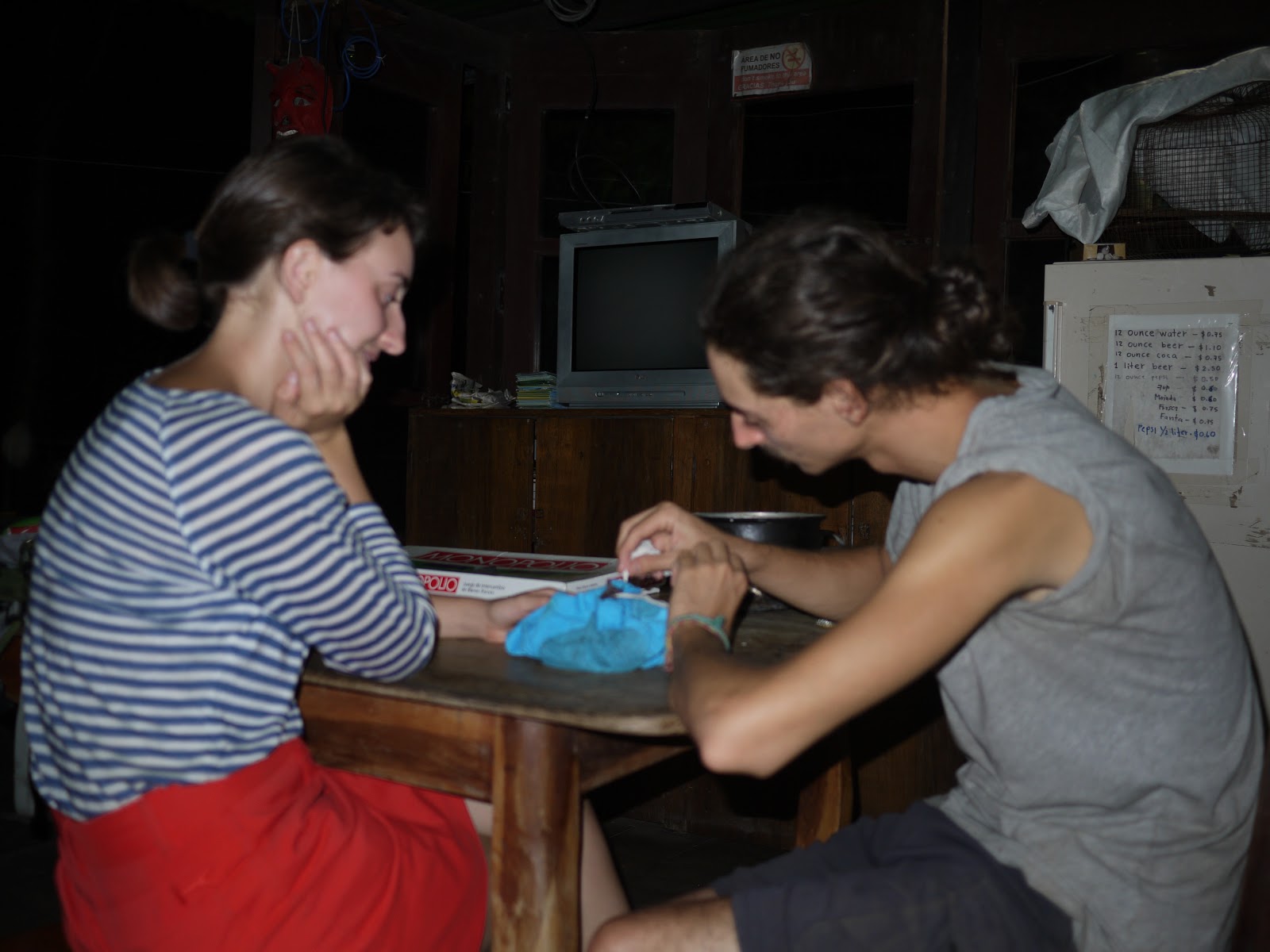 Eco-Warrior Environmental Volunteers in Laguna de Apoyo can be drafted to take on even some simple tasks such as painting labels. Photo Pablo Somarriba.